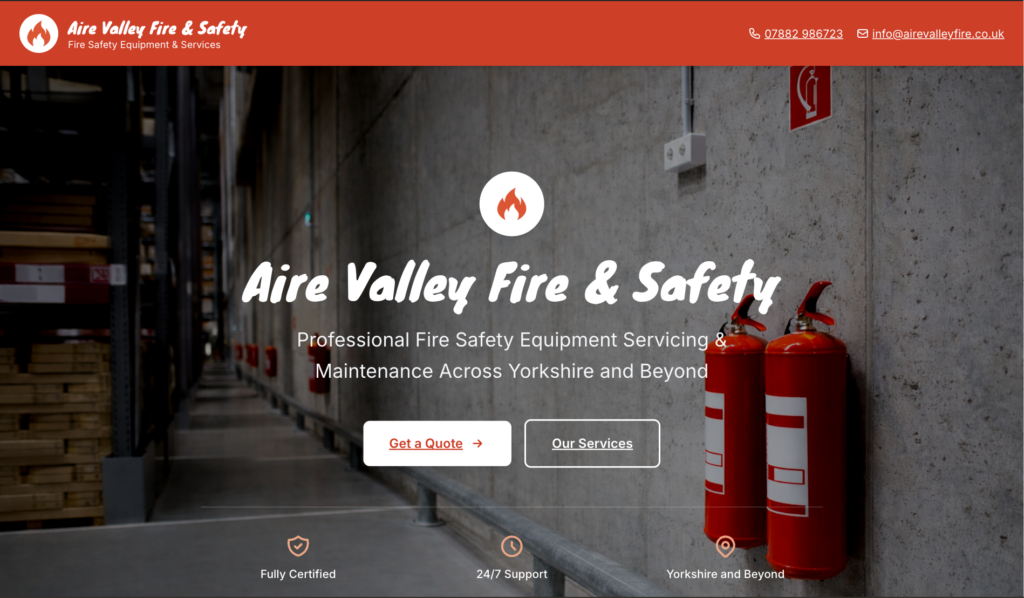 Aire Valley Fire needed a professional online presence to showcase their fire safety services across Yorkshire. As a busy company focused on keeping their clients safe, they didn’t have the time or resources to create content, source imagery, or manage the technical side of building a website.